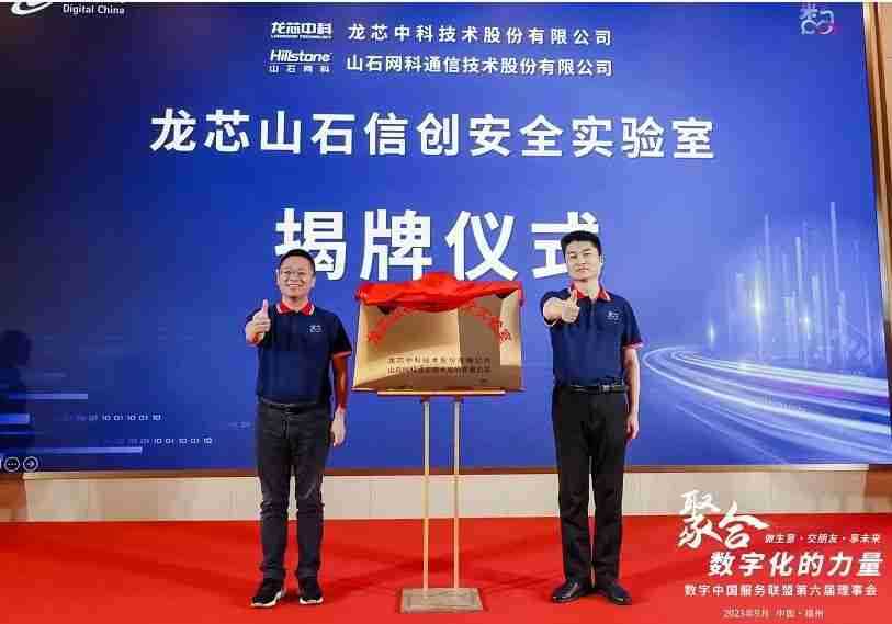 联盟秘书处马郭波对数字中国服务联盟过往的工作进行了总结汇报,,,回顾了联盟近三年来发展壮大历程,,,,展示了联盟伙伴间交流合作的创新探索成果:从解决方案资源池建设、、工程师共享计划尝试,,,,到全聚合公司平台打造。。。并简单阐述了对于联盟的未来发展思路的规划与畅想。。正因有了全聚合的平台,,,,联盟成员之间的合作再上新的台阶。。。。现场,,两家联盟成员单位领导:山石网科首席运营官叶海强与龙芯中科副总裁张戈上台共同为龙芯山石信创安全实验室举行揭牌仪式。。。此次合作实现了优势互补,,,互惠互利共同发展格局。。。双方希望通过发挥各自拥有的品牌优势、、、、地域优势及技术优势进行紧密合作,,,联合发起成立信防安全实验室,,,,打造双赢可持续发展合作伙伴关系。。。