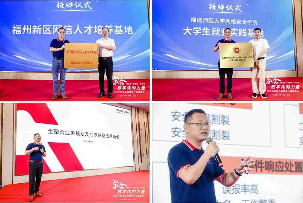 9月11日,,,,2023年国家网络安全宣传周开幕式在福州市海峡国际会展中心举行。。开幕式后,,,,中央宣传部副部长、、、中央网信办主任、、、、国家网信办主任庄荣文,,,,福建省委书记、、省人大常委会主任周祖翼,,,,福建省委副书记、、、、省长赵龙共同出席2023年国家网络安全宣传周网络安全博览会开馆仪式并参观展览。。。。作为福州市网络安全科创走廊和网络安全宣传走廊沿江向海的重要节点和福州市创建国家网络安全人才与创新(福州)基地的重要节点,,全聚合网信人才培养基地和共享靶场首次在博览会福州地方特色展区亮相。。9月12日,,,,中央网信办副主任赵泽良带队,,,,在省委、、、市委网信办主要领导陪同下到全聚合网信人才培养基地实地调研。。。。