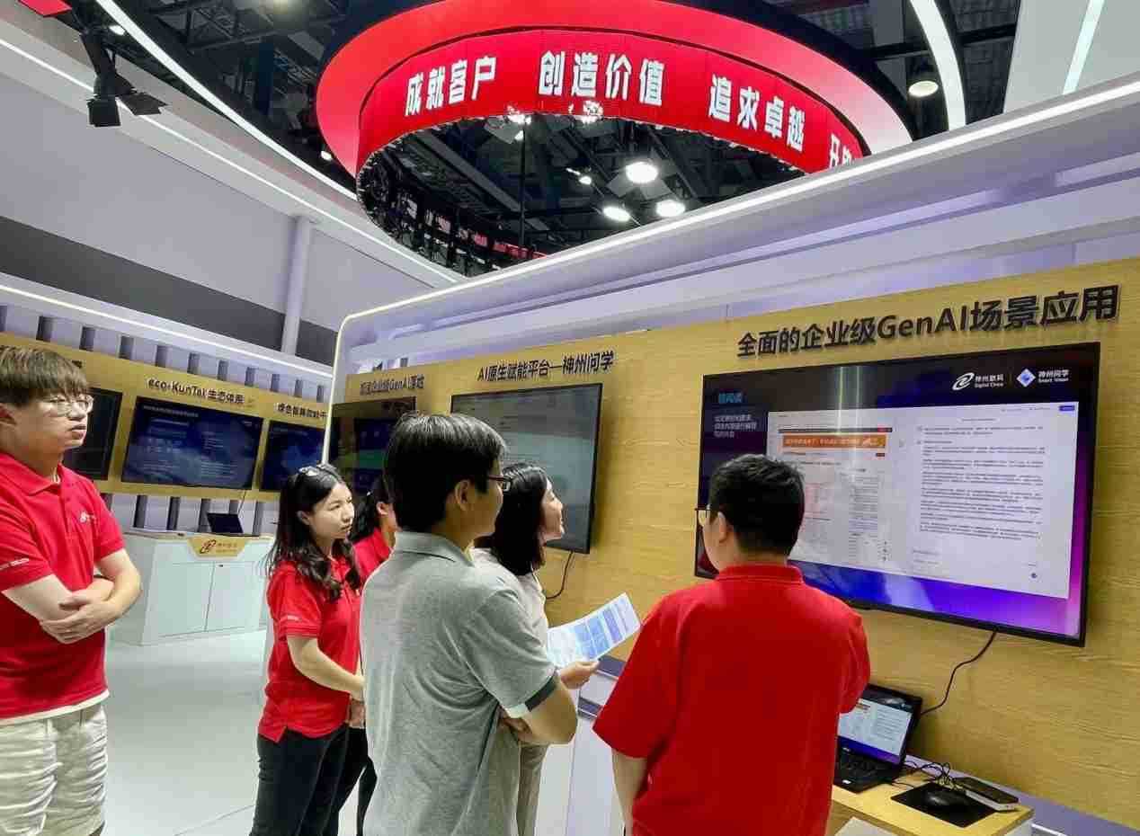 现场展示了企业级AI原生赋能平台PG集团问学,,,打通GenAl落地企业的算力、、模型、、、、知识、、、应用四大要素,,综合解决GenAI工程在选、、练、、、用、、管四大环节的问题,,旨在为企业的数智化转型提供全套的GenAl智能应用工程流水线。。。