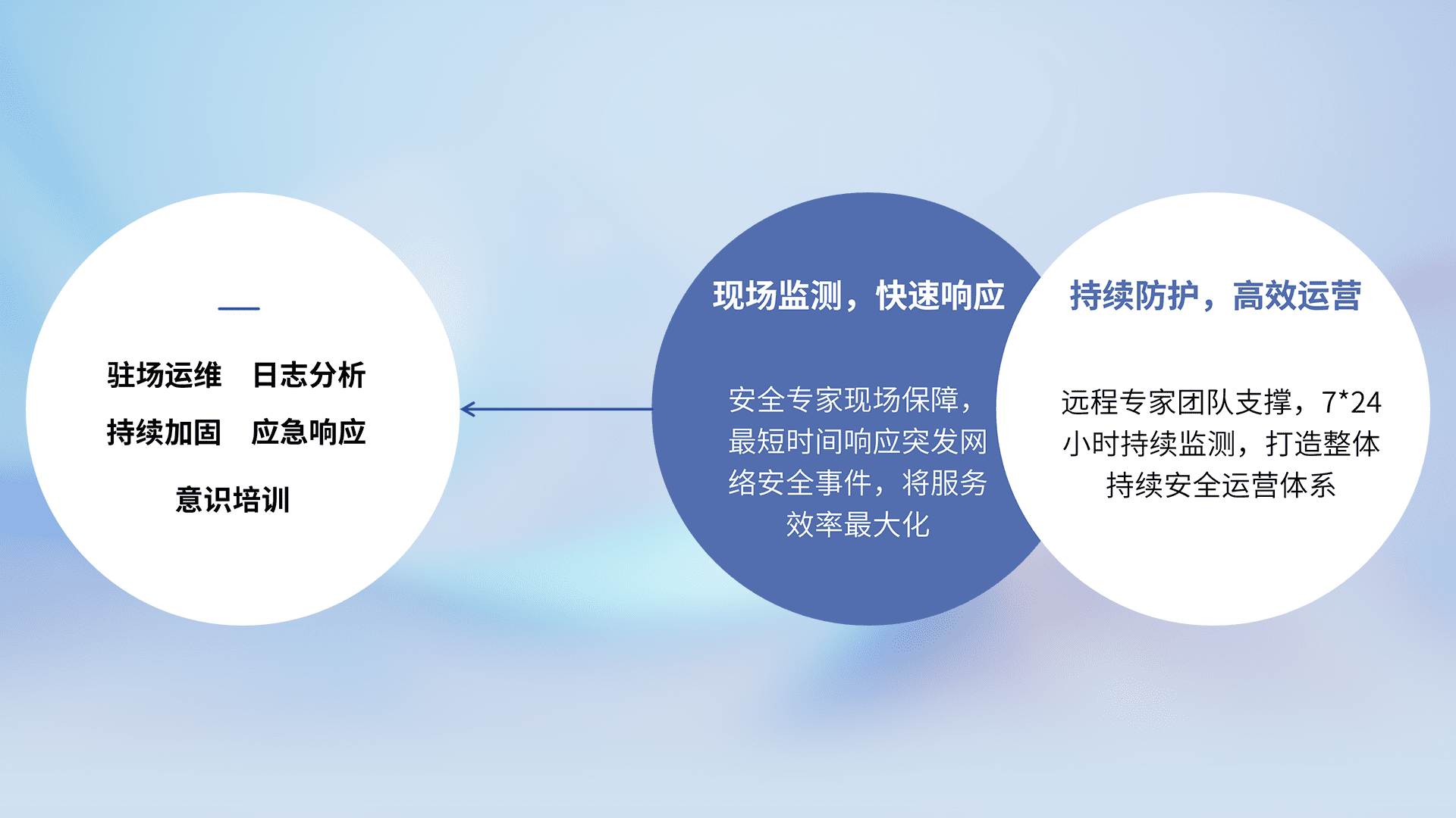 针对客户行业特性,,,,提供专属的一站式安全管理服务,,,,帮助客户全面感知网络空间威胁,,通过安全专家的线上、、、、线下防护支持,,,,实现风险闭环,,,,将安全保障常态化,,,为客户打造常态化安全运维运营服务。。